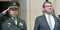 米国防総省前で、中国国歌の演奏を聴くアシュトン・カーター米国防長官(右)と中国の范長龍・中央軍事委員会副主席(2015年6月11日撮影)。(c)AFP/PAUL J. RICHARDS〔AFPBB News