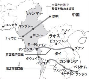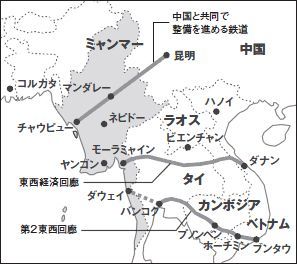 実際、同国は、東西経済回廊(ベトナム・ダナン~タイ・ミヤワディ)の延長線上にモーラミャインが、また、インドシナ半島を横断する「南部経済回廊」(ベトナム・ブンタウ~カンボジア・プノンペン~バンコク)の延長線上にダウェイが位置しており、南シナ海とインド洋を結ぶランドブリッジの要衝にあたる。