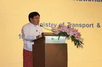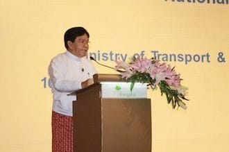 スピーチをするニャン・トゥン・アウン運輸大臣