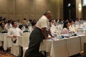 その後、社会基盤・平和構築部の小泉幸弘課長(当時)が登壇し、このセミナーに出席するためにどうやってヤンゴンから来たか会場に問い掛けた。