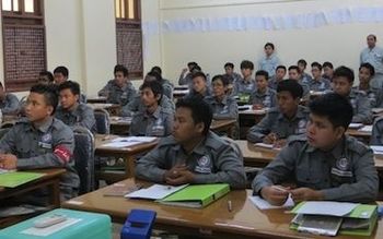 指導にあたるミャンマー人技術者6人は、開講に先立ち、同社の全寮制の技術訓練施設「きんでん学園」(兵庫県西宮市)に半年間派遣され、「心」「技」「体」三位一体の全人教育を通じて「One for All(まず仲間のことを考える)」というチームワーク精神を叩き込まれた。