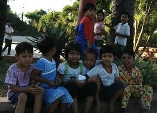 古都タウングーで遊んでいた子どもたちがカメラの前に集まってきた