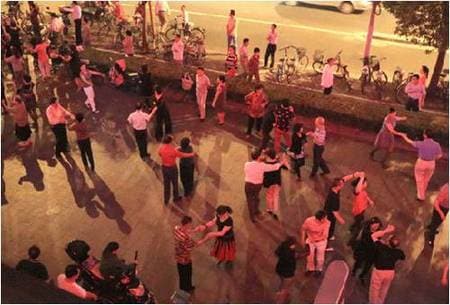 夕方、広場でダンスをする中国の人たち(筆者撮影)