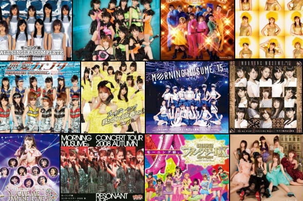 1997年から活動している「モーニング娘。」のCDやDVDジャケットの数々