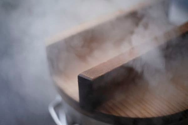 蒸気で食材を熱する、すなわち蒸す。ご飯を蒸しているところ