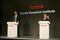 トヨタ・リサーチ・インスティテュート(TRI)の設立について記者会見で発表する豊田章男社長(右)とTRIのCEOに就任するビル・プラット氏(出所:トヨタ自動車)