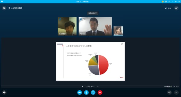 「Office 365ではクラウドに置いたひとつのファイルを、離れた場所にいる複数の人が同時に編集できますが、さらに、必要に応じて、ワンクリックでテレビ会議を立ち上げて会話をする、といったことができるようになります 」