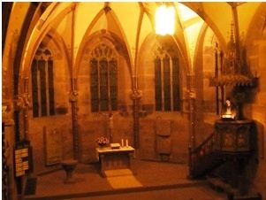 見るからに「教会堂」という風景、ドイツ南部、ヴュルテンベルクの小さな町カルフ(正確にはその郊外ヒルザウ)にある「マリーエン・カペレ」というお堂の中で撮った写真です。