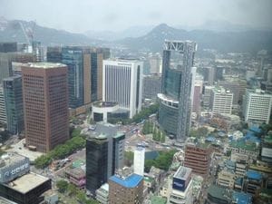 真ん中よりやや右、中間に空間がある一番高いビルが「鍾路(チョンノ)タワー」本社ビルから徒歩15分ほどのやはりソウル中心部にある「鍾路(チョンノ)タワー」もその1つだ。