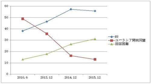 ウクライナでは、経済崩壊(IMF=国際通貨基金予測で2015年度のGDP=国内総生産成長率マイナス9%)により政権支持率は下がり続けているが、世論のEU加盟支持率は安定して推移しており、「侵略国」ロシアへの回帰は考えにくい(図1参照)。