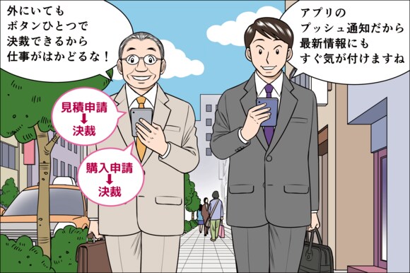 部下1 サイボウズ Officeでワークフローを電子化できたことで、効率化が図れただけでなく、営業成績にも直結してきましたよね。以前は部長が外出されていると、迅速にお客様に見積が出せず、他社に案件を持っていかれるケースもありましたからね。