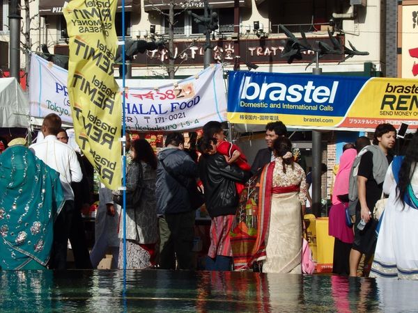 広場にはさまざまな屋台の店が並び、中央のステージでは日本育ちのバングラデシュの子どもたちが母国の歌や踊りを披露する。1年の中で最も特別なこの日、東京はもとより東北や関西からも在日バングラデシュ人が正装して駆けつけた。