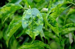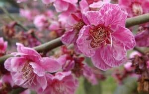 PPVに感染した梅の木では、葉に斑点や輪紋が生じるほか、花弁にも斑模様が生じる。また、果実についても表面に薄く斑点が見られることがある。感染した梅の木では全体