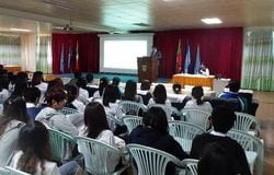 渡邉准教授の講義には約200人が参加した(=調査団提供)