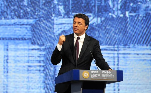 サンクトペテルブルグ国際経済フォーラム(SPIEF)で講演する、イタリアのマッテオ・レンツィ首相(2016年6月17日撮影)。 Photo by kremlin.ru, via Wikimedia Commons.