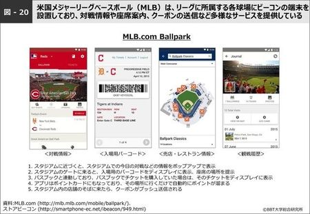 米国のメジャーリーグベースボールは、「MLB.com Ballpark」というアプリを開発し、メジャーリーグ観戦に関する多様なサービスを提供しています(図-20)。