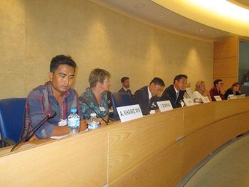 「第4回国連ビジネスと人権フォーラム」で発表するMJTD梁井社長ら