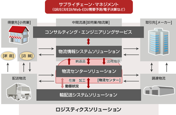 そのLogifitシリーズに代表される富士通の物流ソリューションは、ロジスティクス全体を最適化する「物流情報システムソリューション」、物流センターに関わる課題をワンストップで解決する「物流センターソリューション」、情報連携に注目し輸配送の上流から下流まで構築する「輸配送ソリューション」に大きく分類できる。
