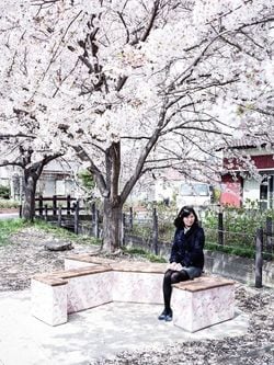 学生が設計・製作した屋外用ベンチ。宮代町の桜の名所「水と緑のふれあいロード」に設置。