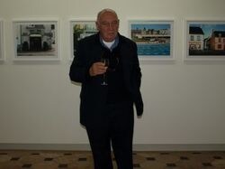 マグナムギャラリーの写真展オープニングでのドゥパルドン氏。国立図書館のは幅2メートルの大型プリントだが、こちらはそれのミニサイズを展示。もちろん購入も可能