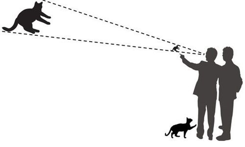 入試の不思議な写真から:遠方にいる大きなネコも、遠近感(奥行き視)に基づく錯視のため、指先で掴めるチビに見えてしまうメカニズム