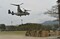 熊本県南阿蘇村で、輸送支援を終え離陸する米海兵隊の新型輸送機オスプレイ(2016年4月18日撮影)〔AFPBB News〕