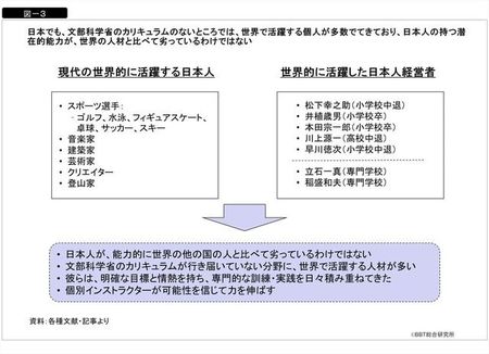図-3の左側を見てください。現代の日本にも、世界で活躍する人はたくさんいます。スポーツ選手、音楽家、建築家、芸術家、クリエイター、登山家など、日本人が数多く活躍しています。この人たちには共通項があります。