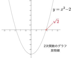 √2という数は方程式x2=2のxを満たす数です。すると関数y=x2-2のグラフのx切片(グラフとx軸の交点)を√2と見ることができます。