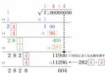 最後に√の中の小数点「.」を√の真上に書いて√2の近似値が「1.4142」と求まります。