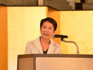 生団連臨時総会で挨拶する政治家たち。野党からも蓮舫氏が駆けつけた