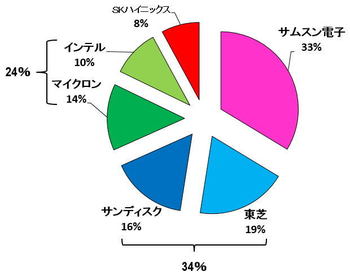 図1 NANDの企業別売上高シェア(出所:DRAM eXchang、2016年3月)