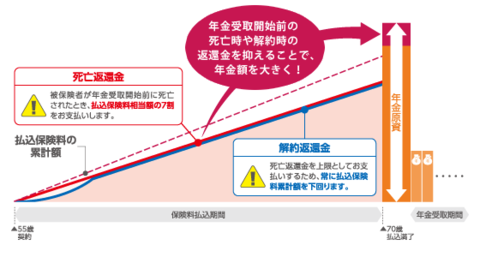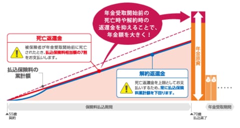 具体的には、被保険者が年金支払開始日前に死亡したとき、払込保険料相当額の7割が死亡返還金として支払われるという。