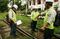 炎天下、チーミンダイン駅付近でひたすら地道な計測作業を続ける技術者たち