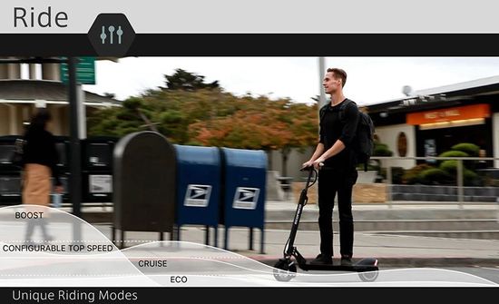 自分の足でキックして運動をしたい時など、スクーターの機能をあまり使わずに人力での走行をメインとしたモード。自分の脚力を補助してくれるモードなのでバッテリーの消耗も少なく、走行距離は最大 40 マイル(約 64km) にも達する。