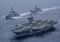 米空母カール・ビンソンを護衛する海自駆逐艦あしがら、同さみだれ(写真米海軍)