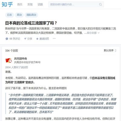 (『知乎』「日本真的淪落成三流国家了嗎?」)