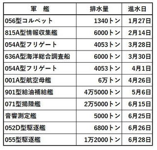 ちなみに、2017年上半期に誕生した中国海軍艦(小型艇を除く)は以下の10隻である(表)。
