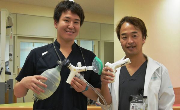 ALSなど神経筋疾患患者のための呼吸のリハビリ機器を開発した国立精神・神経医療研究センター(東京都小平市)の理学療法士、寄本恵輔さん(40歳)と有明陽佑さん(30歳)に話を聞いた。