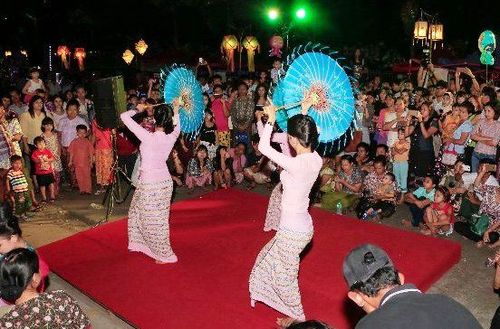 歩行者天国では、伝統舞踊が披露されるなどミャンマー色が強く打ち出された(=調査団提供)