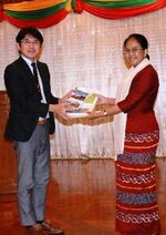 2016年8月から行ってきた調査結果をヤンゴン管区の要人に手渡す平野さん(左)
