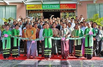 シャン州のタウンジーで大々的に開かれた投資セミナーのオープニングの様子(左)