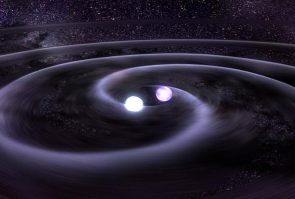 中性子星同士の衝突で重力波が生じる様子のイメージ図。 Photo by NASA/Goddard Space Flight Center.