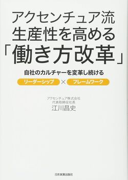 『アクセンチュア流生産性を高める「働き方改革」』江川 昌史(日本実業出版社)アクセンチュアでは、政府主導の働き方改革実現会議発足に先駆け、2015年1月より「Project PRIDE」をスタートさせている。現 代表取締役社長の江川 昌史氏が「アクセンチュアさん、採用関係では、ものすごく評判悪いですよ」という人材紹介会社の言葉を耳にしたのがきっかけだった。