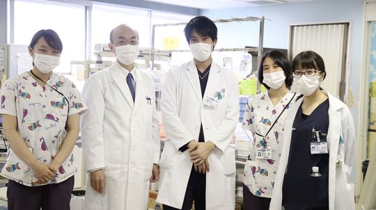 研究に取り組む、勝沼医師(左から2番目)とチームの皆さん。