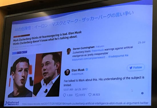 2017年7月のことだ。米フェイスブックCEOのマーク・ザッカーバーグ氏と米テスラモーターズのCEOイーロン・マスク氏が、AIの危険性について真っ向対立する意見をそれぞれ展開、ソーシャルメディア上で論戦状態となった。