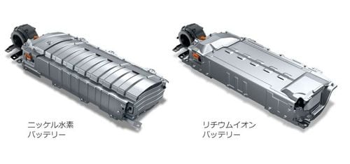 最新のプリウスが使用する電池 ニッケル水素電池とリチウムイオン電池の双方がある。(出所:トヨタ自動車Website)