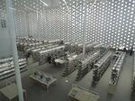 建物の中に入って2階の一般閲覧室へと上がろう。そこにはさらに驚かされる空間が広がる。天井高さが12mもある一室の大空間が、わずか直径30cmの柱で支えられている。柱が細いのは、垂直方向の力を受けるだけだから。水平方向の力は、実は穴あき壁自体が構造になっていて、これを受け持っているのである。
