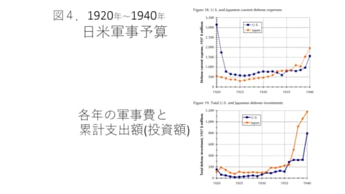 当時、日本の軍事費は米国を上回っていた(図4)。このような状況下では、ある程度の理性を有した国家であれば、戦争に勝利できる(あるいは有利な交渉条件を勝ち取れる)と考えてもおかしくはない。