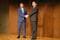 東芝メモリ売却が完了し会見に臨んだ東芝メモリの成毛康雄社長(右)とベインキャピタルの杉本勇次・日本代表(2018年6月4日、写真:AP/アフロ)
