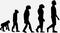 進化と聞くと、下の図のように猿が人間になっていく絵をイメージされる方も多いかと思います。日本語の「進む」という語感もあり、一直線に前進していくような感じがしますよね。